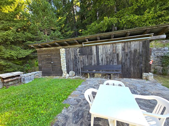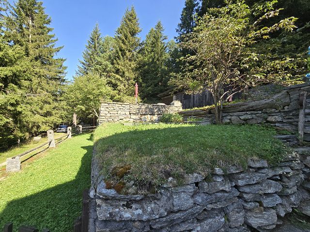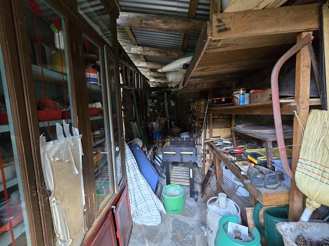 Das Anwesen umfasst ein typisches Bergbauernhaus, einen großen Garten mit Obstbäumen, zwei Terrassen, einen Geräteschuppen und einen Keller. Dieser ehemalige Stall wurde vor etwa 40 Jahren renoviert und befindet sich in gutem Zustand.