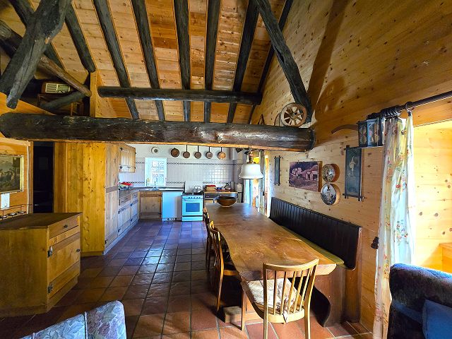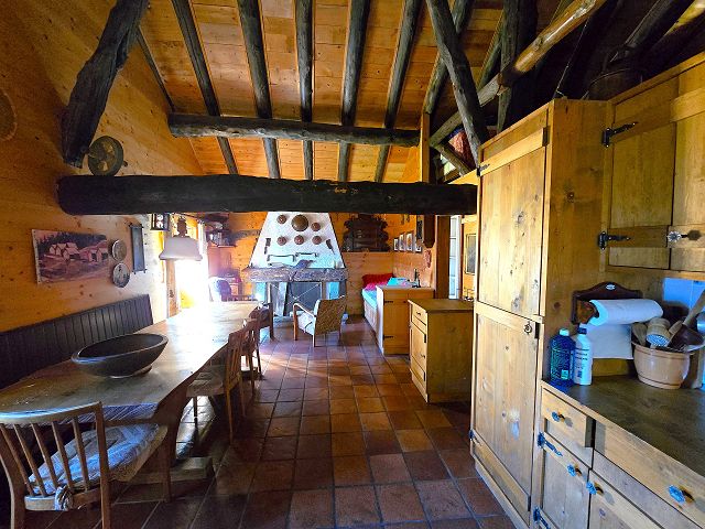 La cascina di generose metrature e stile autentico di montagna ha tutto il necessario per una vacanza in montagna.