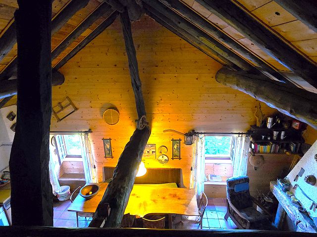 Das Bauernhaus ist wie folgt aufgebaut: Der Haupteingang führt zu einem geräumigen Wohn-/Küchen-/Esszimmer mit Kamin, einem Doppelzimmer und einem Bad/WC. Im Untergeschoss befinden sich ein großes Zimmer, ein Bad/Dusche/WC, ein Keller und ein Technik-/Flurraum. Das Haus wird durch einen hohen Dachboden mit drei Schlafplätzen vervollständigt.                         Von allen Seiten genießt man einen schönen Panoramablick.