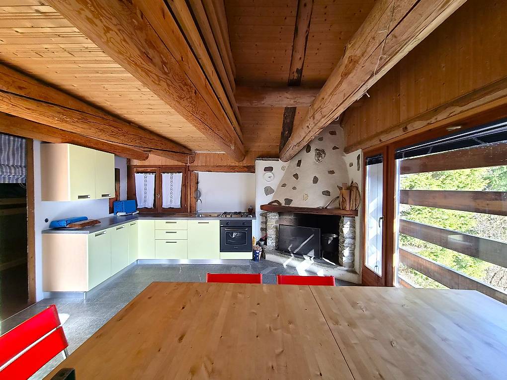 - l’ingresso principale porta a soggiorno-pranzo-cucina con camino e piccola camera