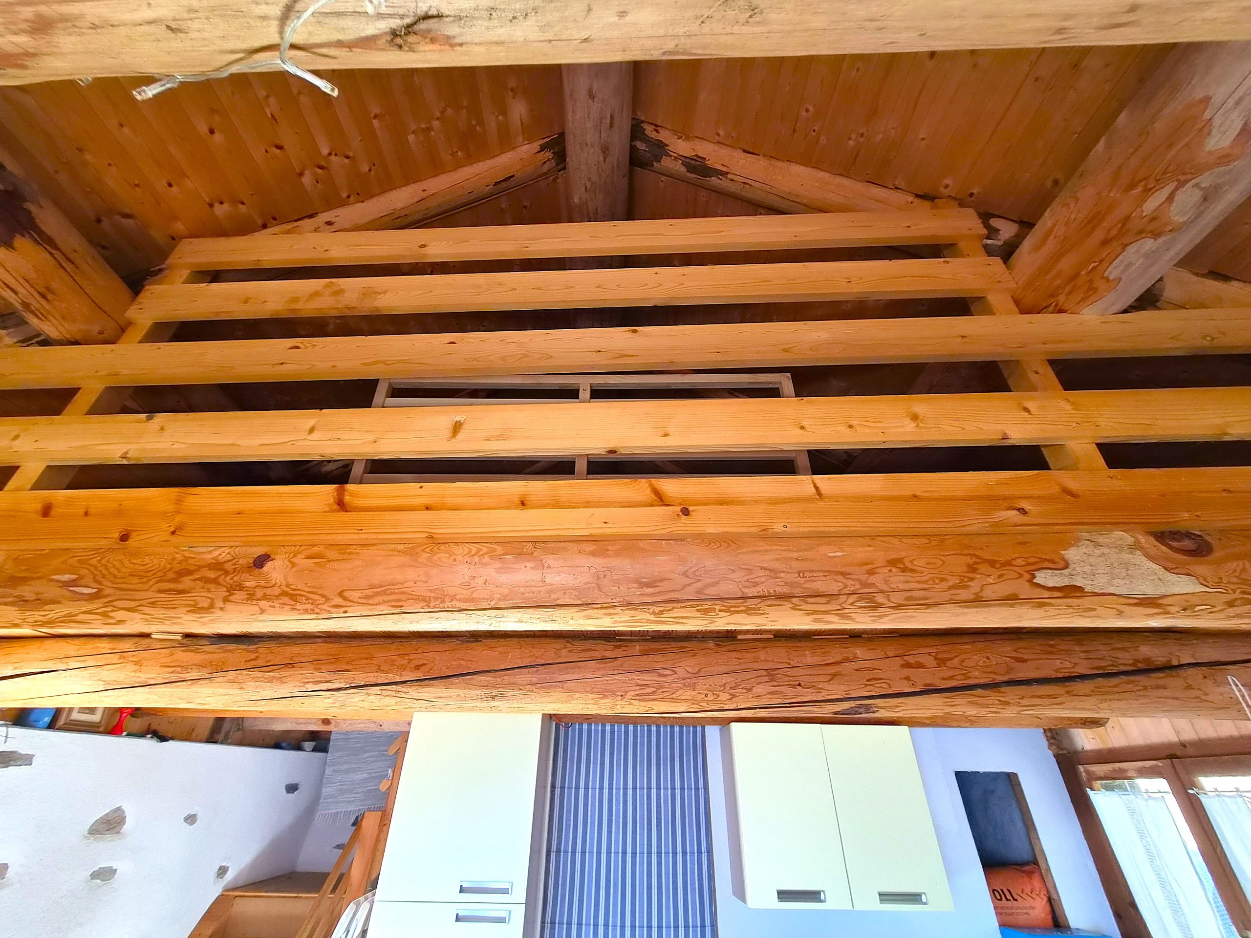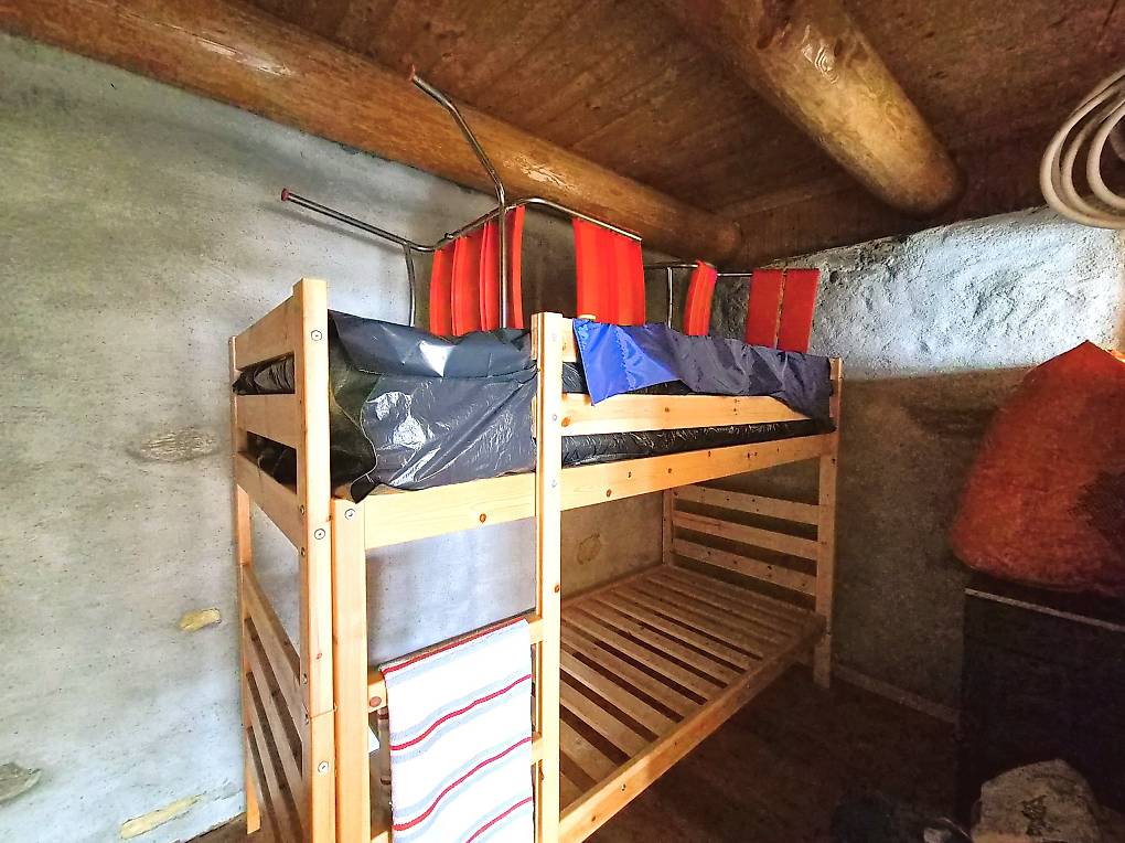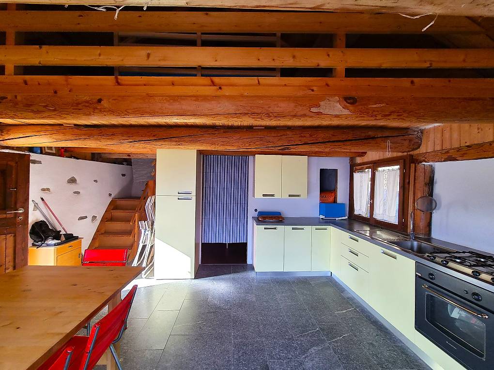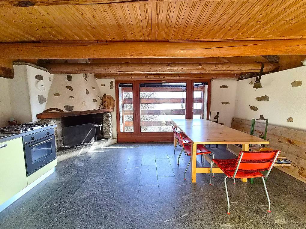Das Bauernhaus wurde vor etwa 10 Jahren renoviert und befindet sich in einem guten Gesamtzustand. Das Haus ist wie folgt aufgeteilt: Der Haupteingang führt in den Wohn-Ess-Küchenbereich mit Kamin und einem kleinen Zimmer. Der Schlafbereich mit Doppelbett befindet sich auf der Galerie. Die Innentreppe führt ins Untergeschoss, wo sich ein Bad mit Dusche und WC sowie ein einziger Raum im Rohbauzustand befindet, der je nach Bedarf auch in ein Schlafzimmer umgewandelt werden kann.