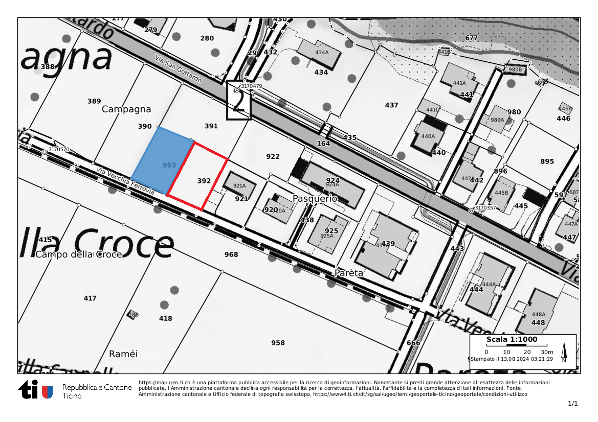Vi è inoltre la possibilità di acquistare un ulteriore terreno adiacente di identiche dimensioni, allo stesso prezzo, così da disporre di una superficie complessiva di 1’112 mq. In caso di acquisto di entrambi i terreni, il prezzo complessivo è di CHF 500’000.–.